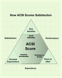 Most all ACSI activity is centered at the University of Michigan in Ann Arbor where Claes Fornell, the founder and principal developer of the methodology is a chaired professor at the business school. American Customer Satisfaction Index LLC is a private company also in Ann Arbor that conducts and publishes ACSI survey results for both business and government sectors. As an index, the ACSI’s ability to track both macro and micro economic timelines as leading trends has been well documented in the peer-reviewed literature. It’s ability to trend even stocks, which are often assumed to move as a random walk, has also been demonstrated supporting Fornell’s original assertion that customer satisfaction is basic to all economic processes.