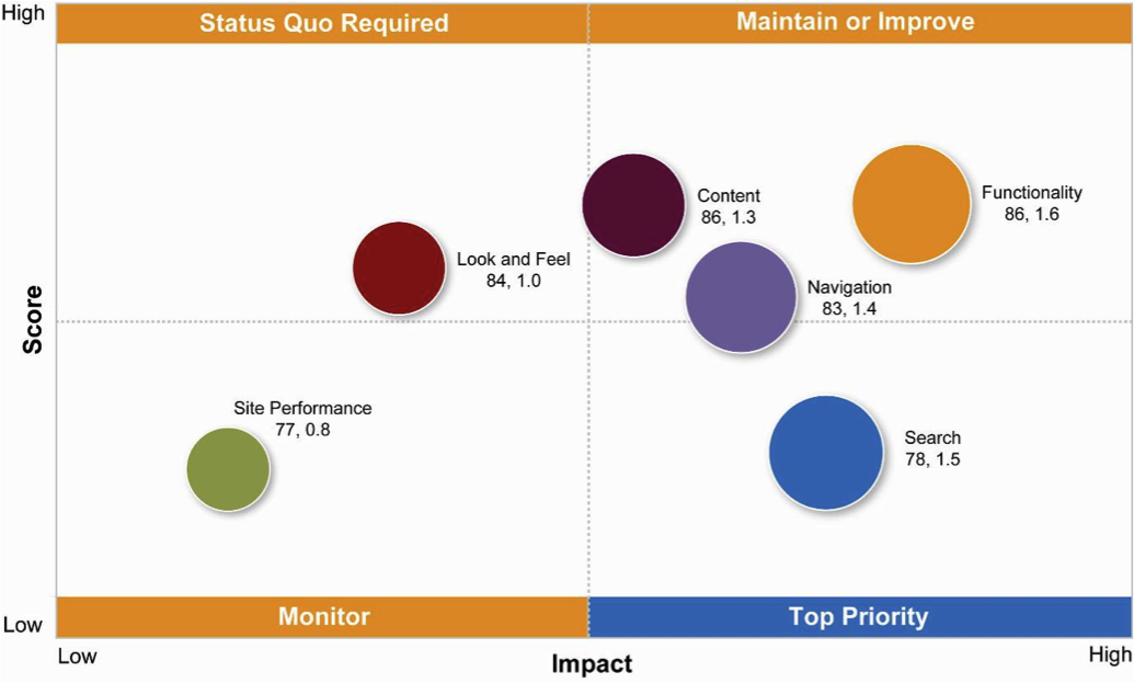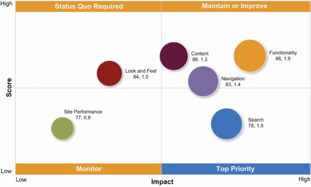 From this one can clearly see that internal search is a top priority for change that will have high impact on performance.