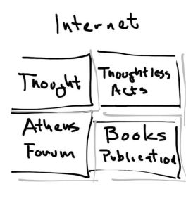 So now apply these rules to a medium such as the Internet (before the Web). The Internet (as invented by DARPA and Al Gore) enhances thought both in retrieving information that nurtures thought and expressing thoughts to help others. It obsolesced books or publications that inform thought but at a much slower rate and at higher cost preventing just anyone off the street from participating (except as a reader). The Internet retrieves the Forum in Athens where individuals came to share thoughts and dialogue.